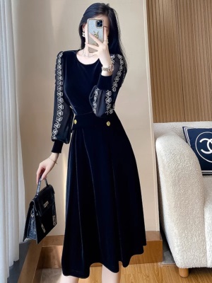 冬天法式黑色连衣裙高级感2025秋季新款女气质正式场合丝绒小黑裙