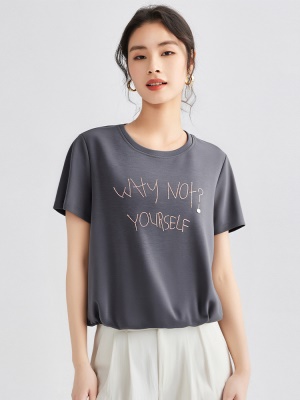 纯棉短袖t恤女2025新款爆款洋气百搭正肩设计感印花圆领洋气上衣