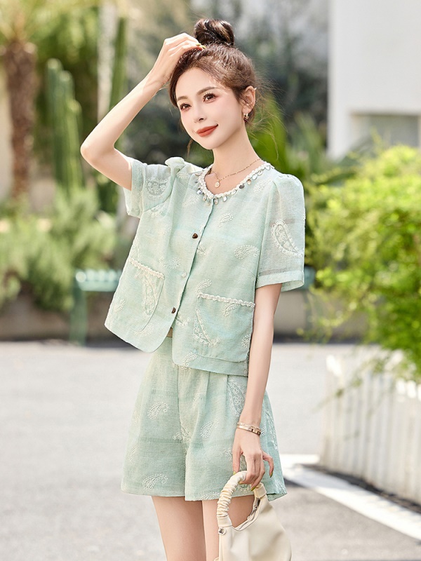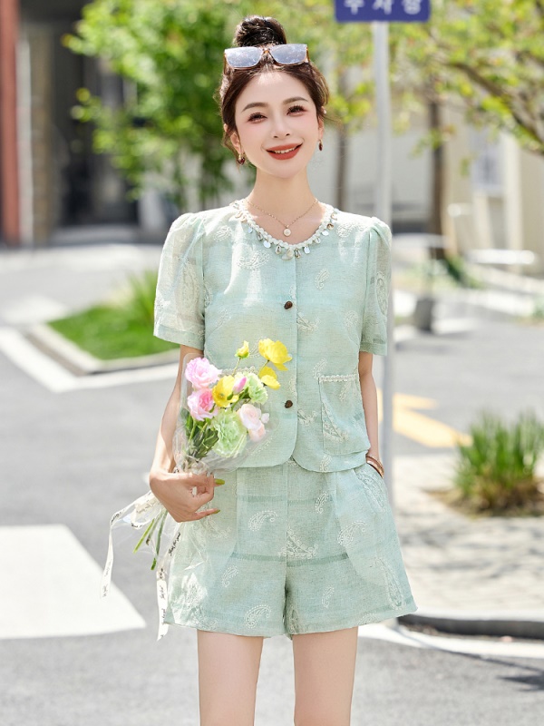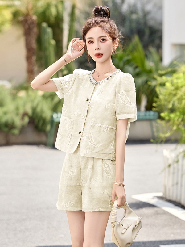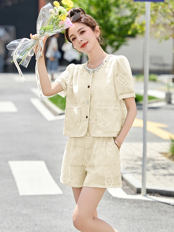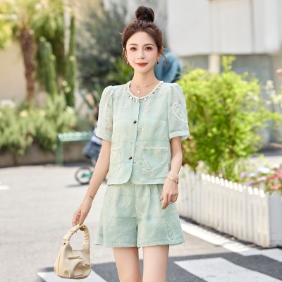 商品名称:小香风刺绣亮片短裤套装女2025夏季新款小个子时尚洋气欧货两件套