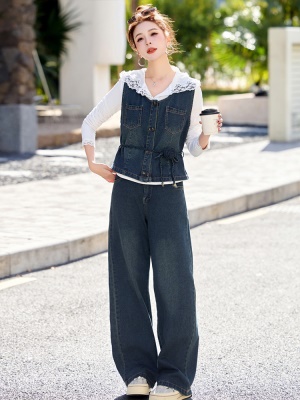 欧货今年流行工装风套装女2025春季新款高级设计感牛仔马甲三件套