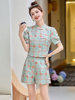 中国风提花短裤套装女2025夏季新款时尚小个子盘扣复古中式两件套
