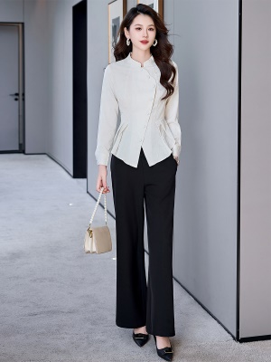 欧货时尚职业套装女2025年秋季新款正式场合显瘦衬衣喇叭裤两件套