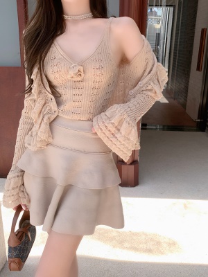 ByYou秋季新款气质卡其色针织半身裙多层蛋糕裙高腰显瘦a字短裙子