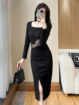 秋冬包臀连衣裙新款名媛气质御姐风设计感显瘦女方领晚礼服裙高端