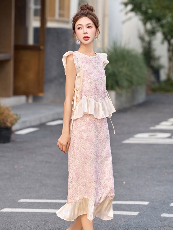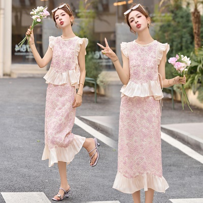 商品名称:时尚气质巨好看的夏日套装女2025新款超火飞飞袖上衣鱼尾裙两件套