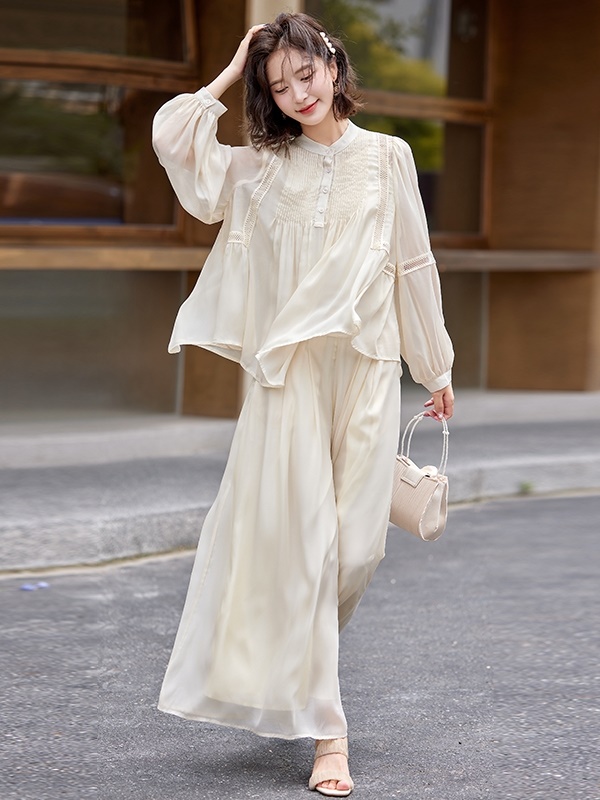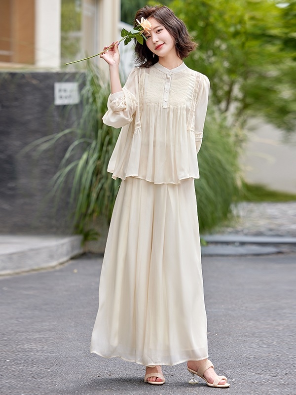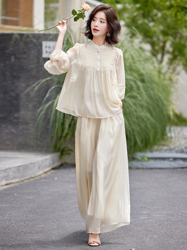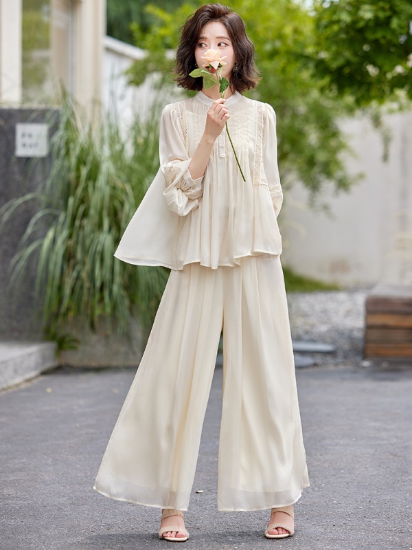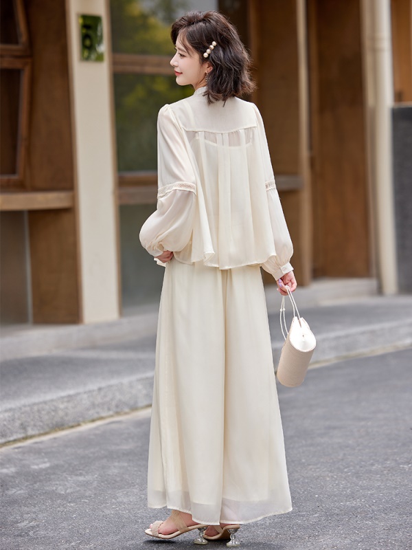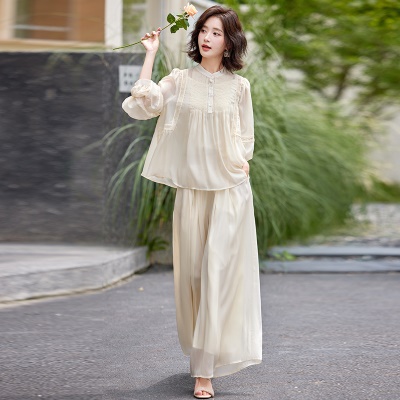 商品名称:超仙时尚雪纺套装女2025春夏新款半透减龄显瘦流行阔腿裙裤三件套