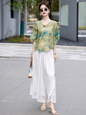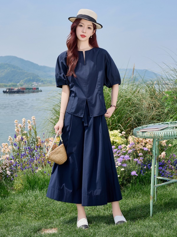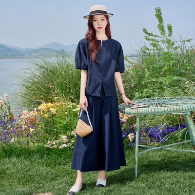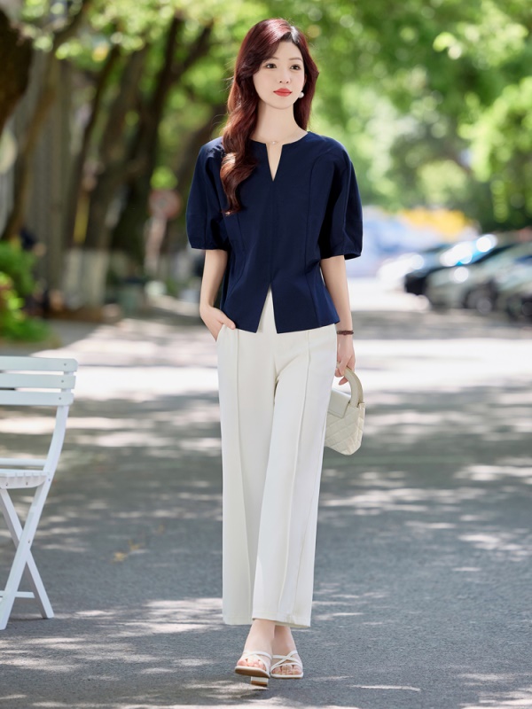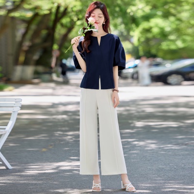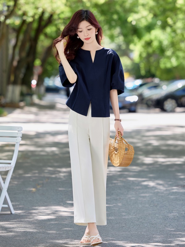 商品名称:职业无领灯笼袖衬衫套装女2025夏季新款气质显瘦极简老钱风两件套