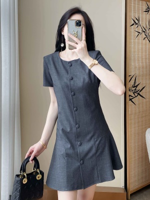 小香风灰色西装连衣裙女夏季2025新款高级感气质显瘦通勤职业裙子