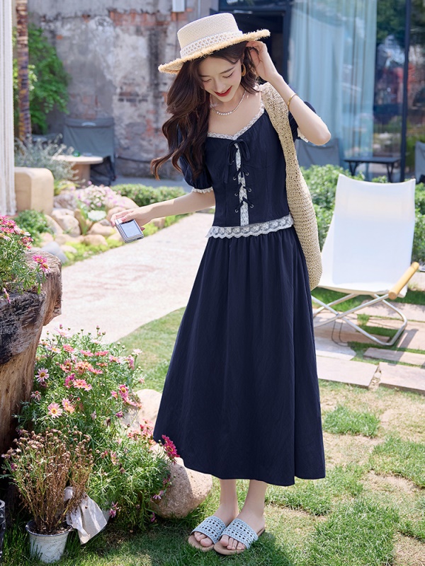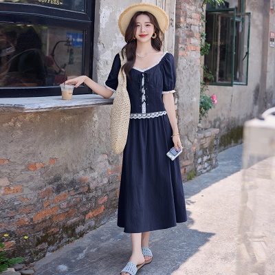 法式赫本风高级感气质连衣裙女夏季黑色网纱拼接遮肉收腰显瘦长裙