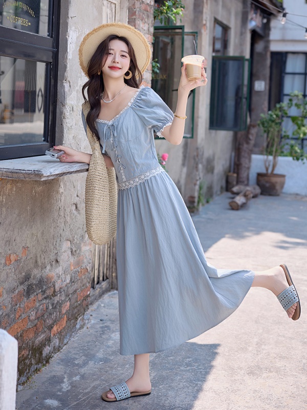 商品名称:蕾丝花边小香风牛仔套装女2025夏季新款气质天丝绝美小裙子两件套