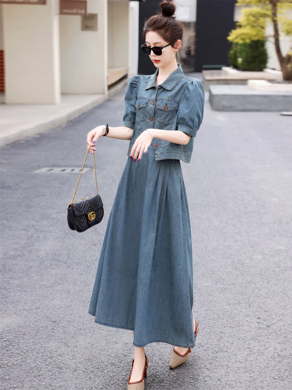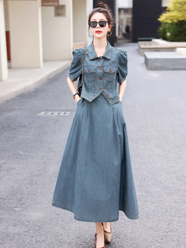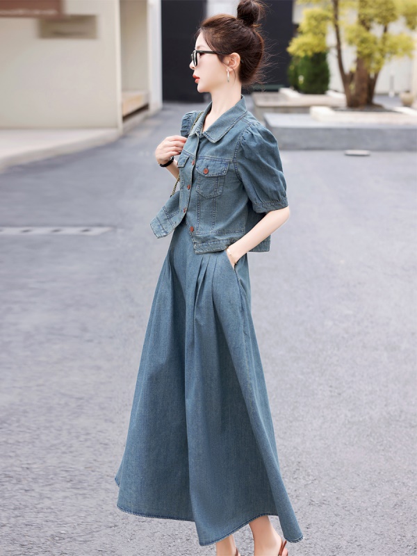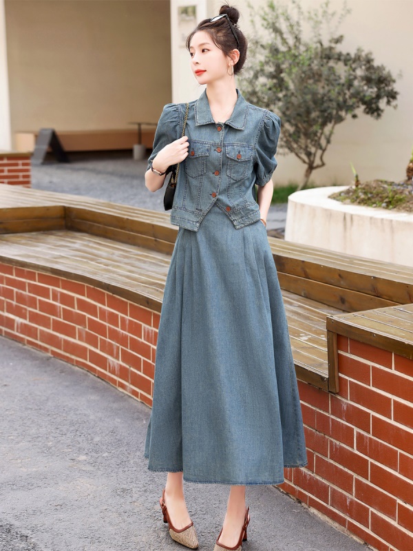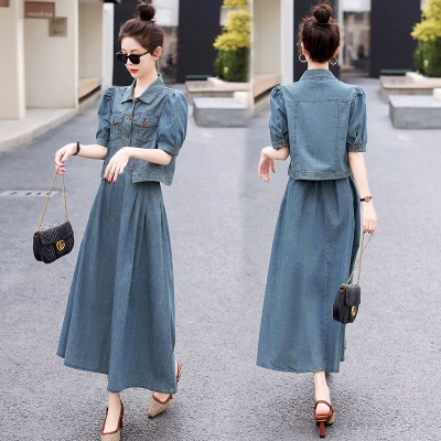 商品名称:欧货天丝牛仔套装女2025夏季新款复古气质漂亮国风半身长裙两件套