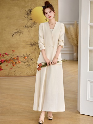 新中式国风西装套装女2025春季新款时尚高端大气禅意茶服两件套裙
