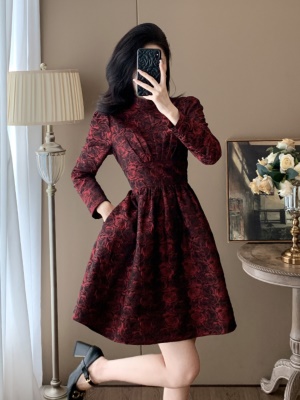 秋冬新款裙子女轻奢高端小个子宴会连衣裙法式蓬蓬裙收腰小礼服裙
