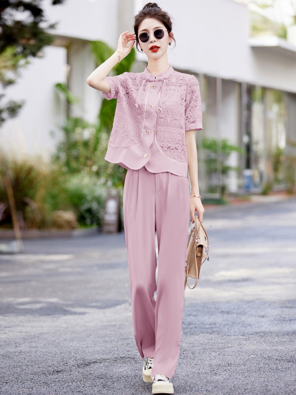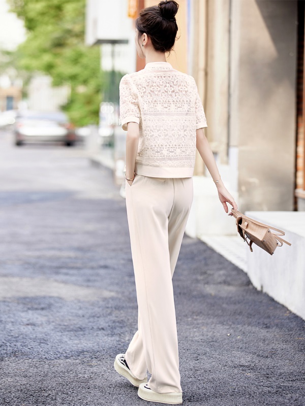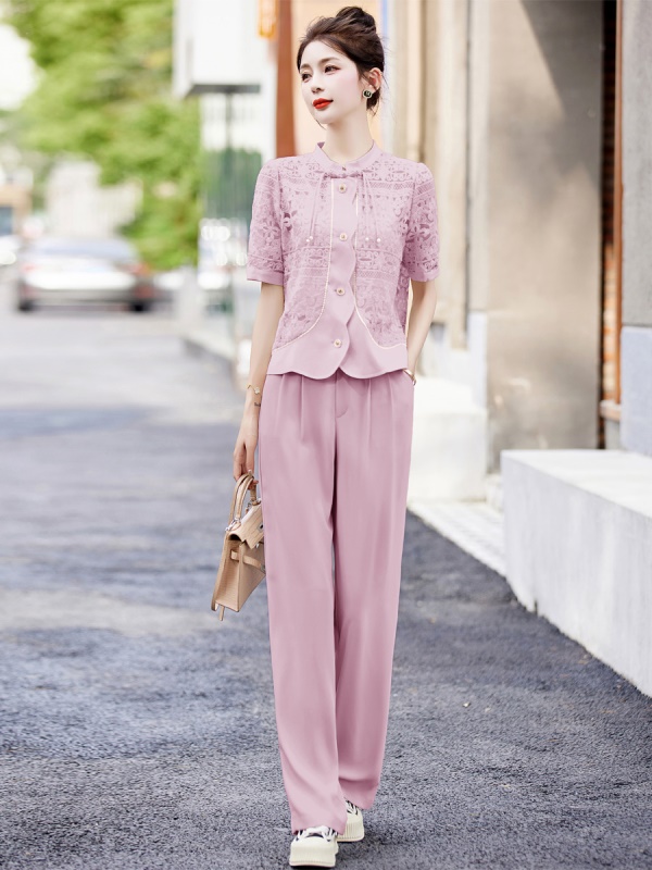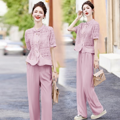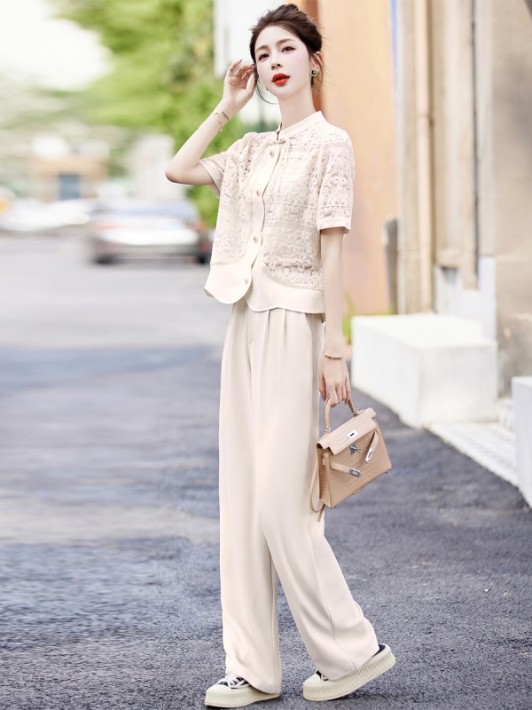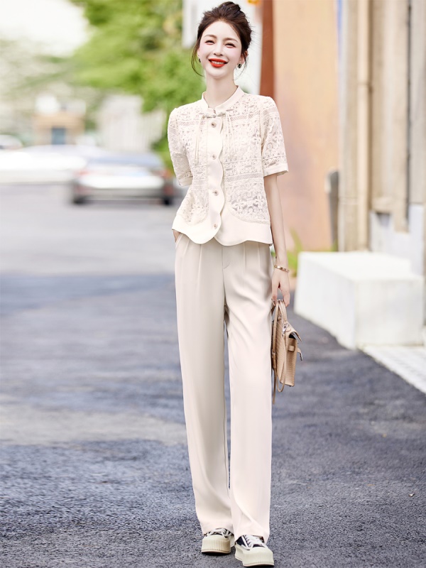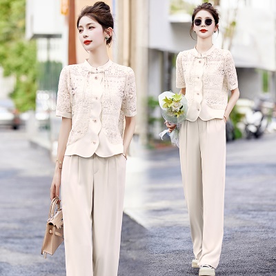 欧货干练气质套装女2025夏季新款波点别致工装风时尚高端两件套裤