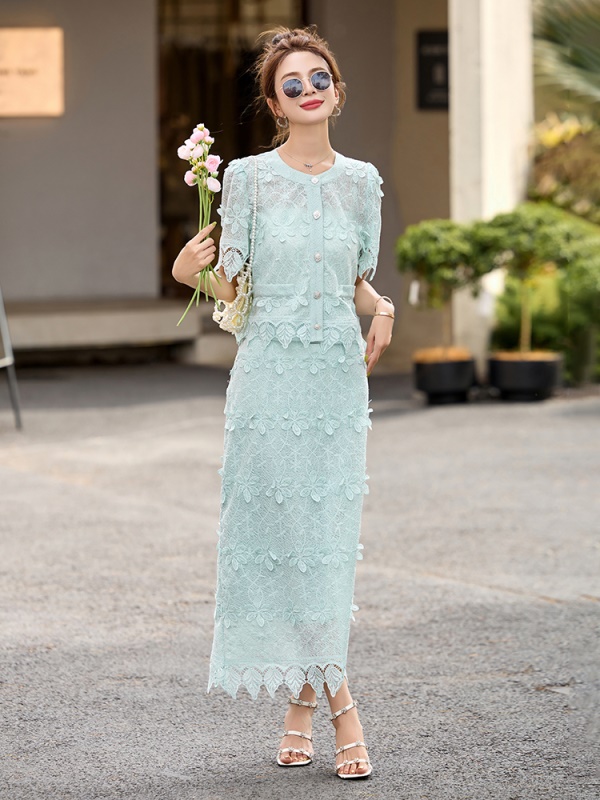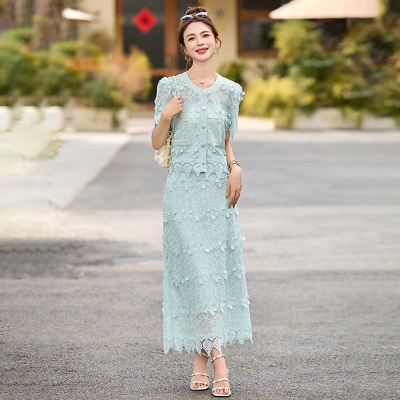 商品名称:欧货蕾丝绣花套装女夏2025新款时尚高级感独特漂亮超火小香两件套