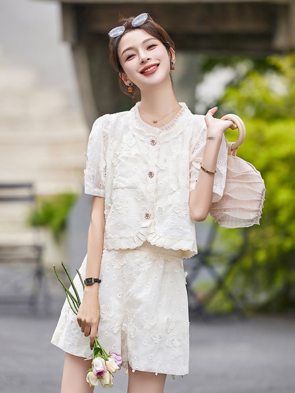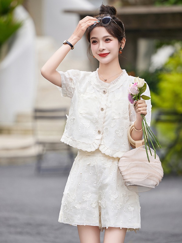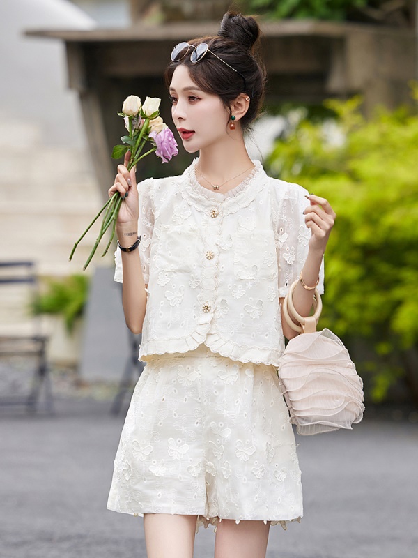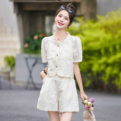 商品名称:小香风名媛蝴蝶绣花套装女2025夏天新款时尚高级感休闲短裤两件套