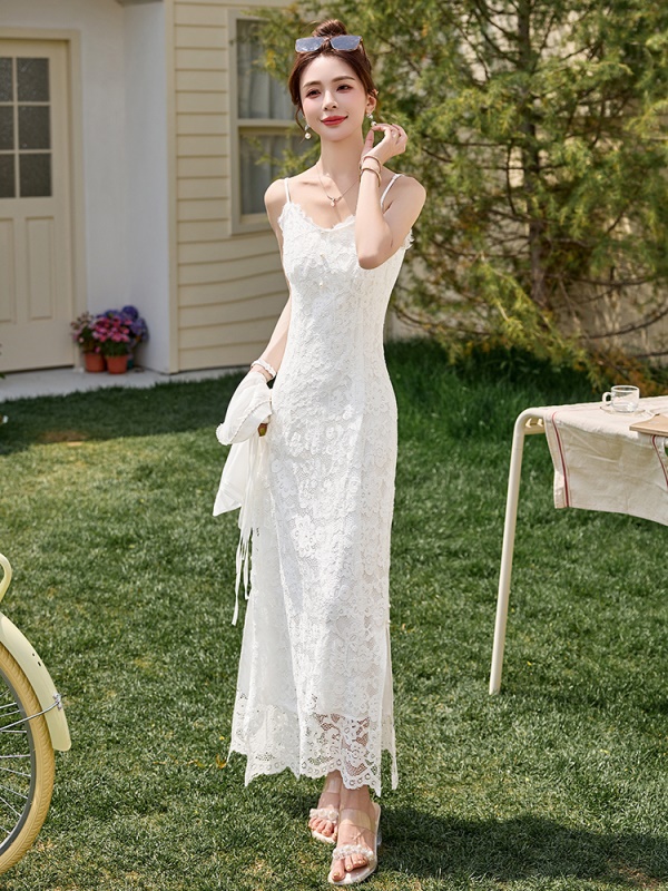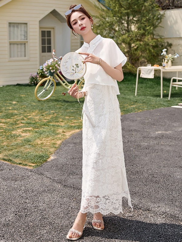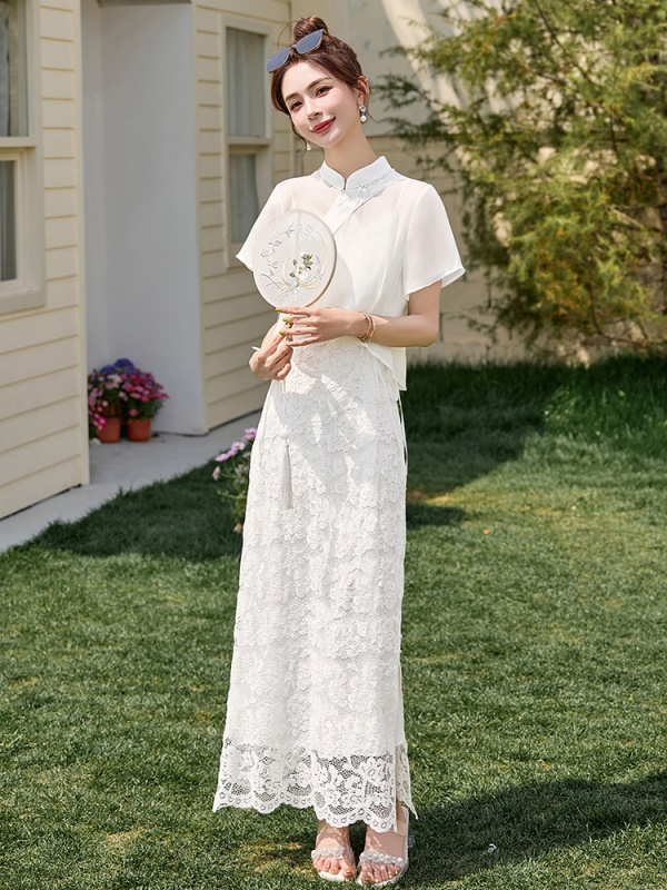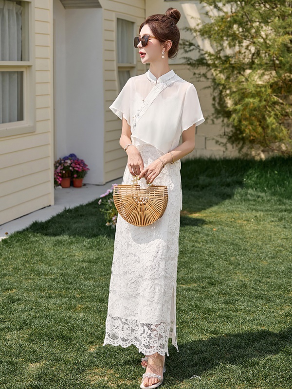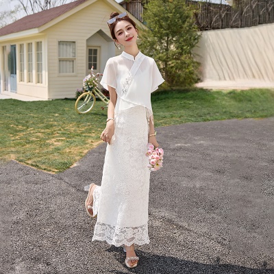 商品名称:新中式雪纺罩衫吊带裙套装女2025夏新款国风巨好看蕾丝长裙两件套