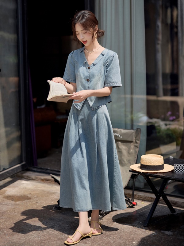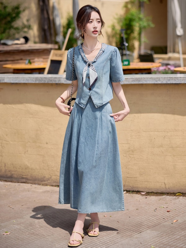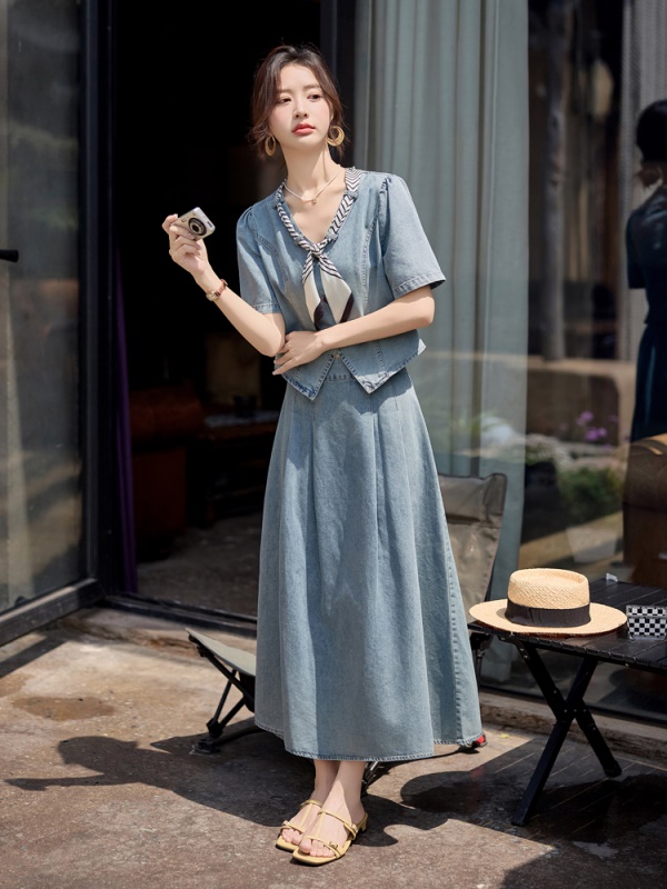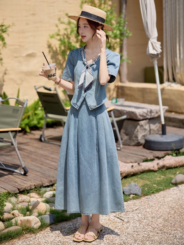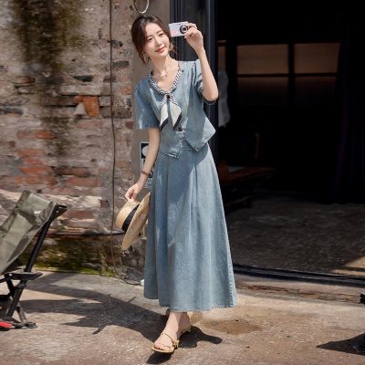 商品名称:夏日绝美小裙子套装女2025新款气质高端御姐女神范天丝牛仔两件套