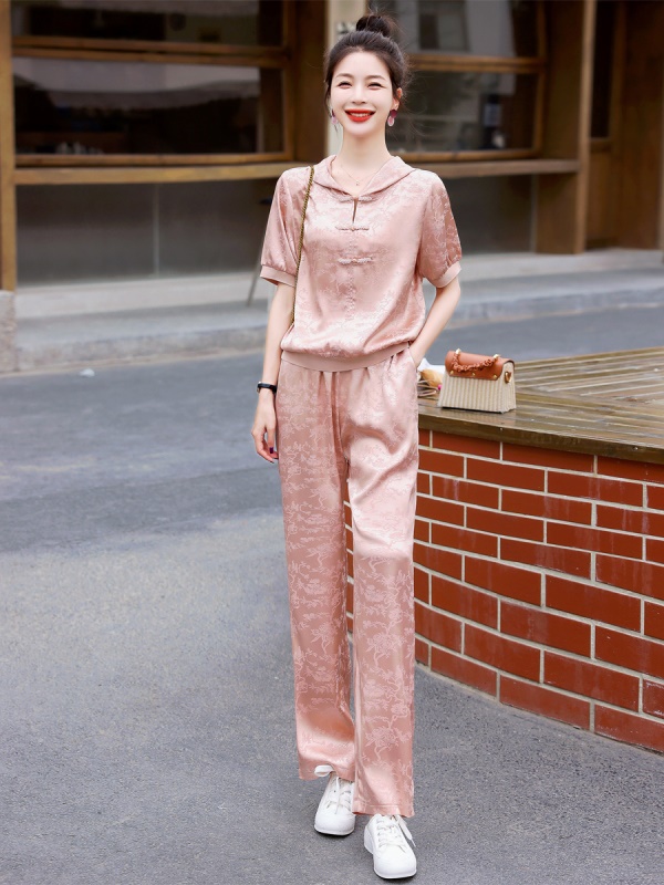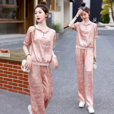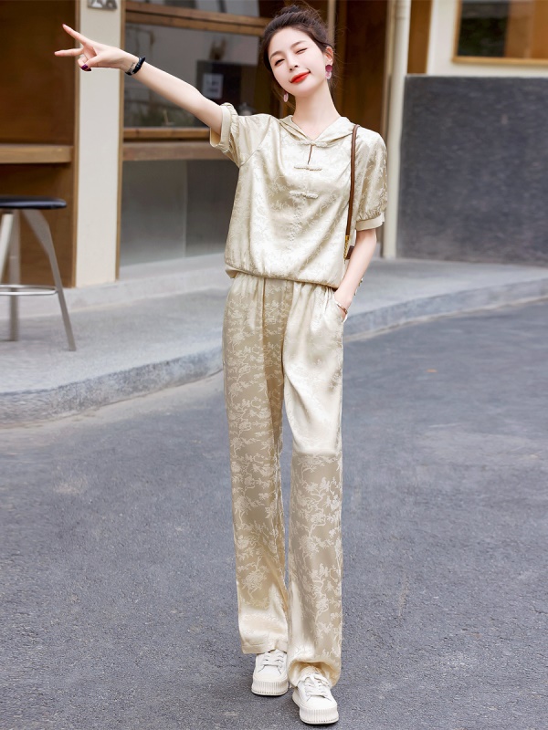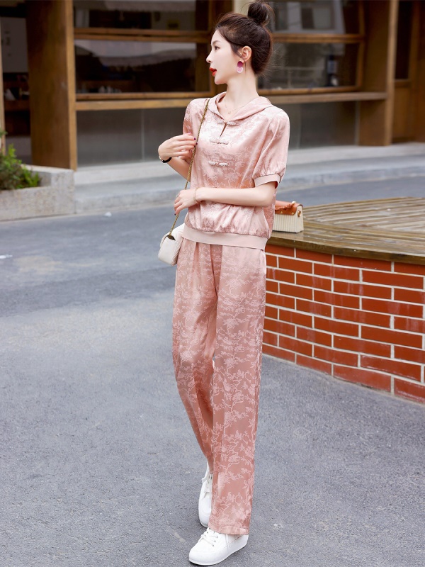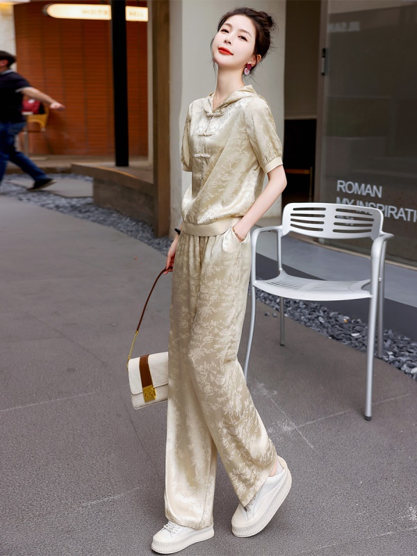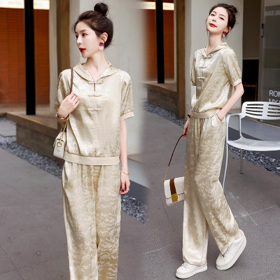 商品名称:高级感时尚套装女夏季2025新款休闲运动减龄醋酸缎面卫衣两件套潮