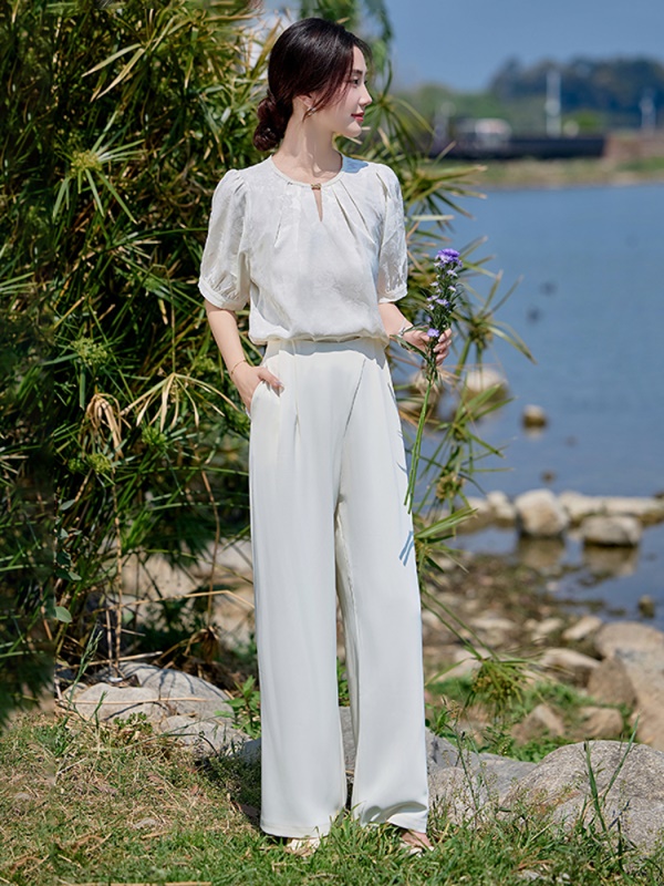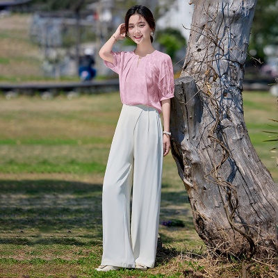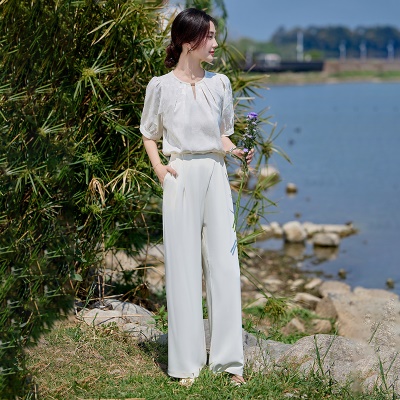 商品名称:高端巨好看的冰丝夏装套装女2025新款缎面超火气质贵夫人两件套裤