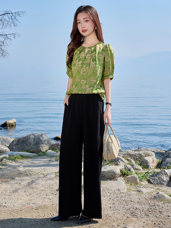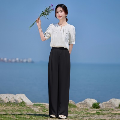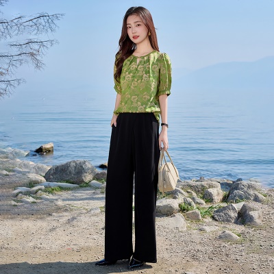 新中式国风贵夫人套装女2025夏季新款高级感旗袍上衣阔腿裤两件套