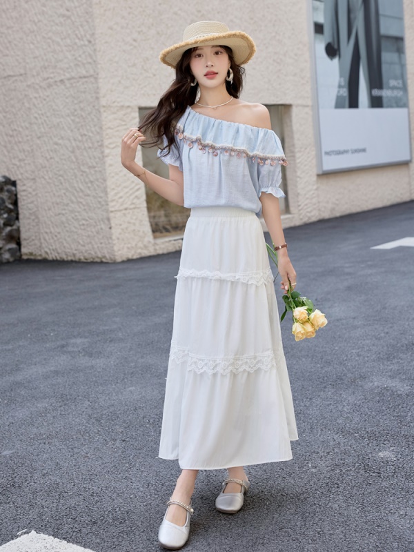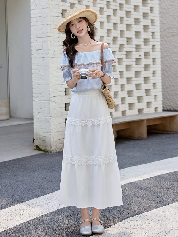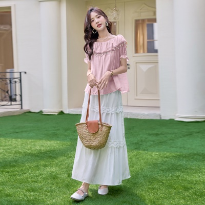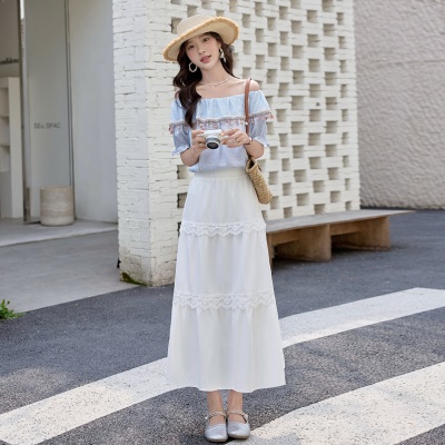 商品名称:高级感露肩套装女2025夏季新款巨好看时尚减龄高腰半身长裙两件套
