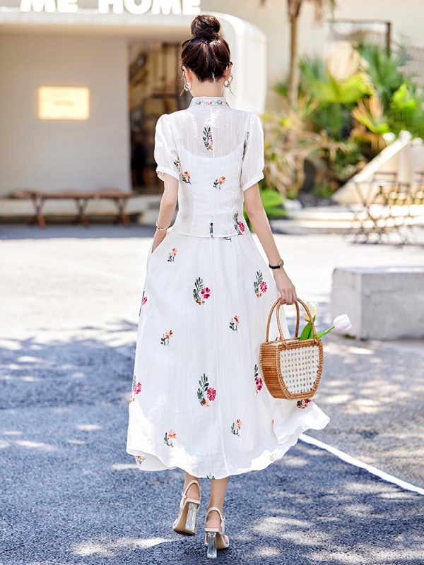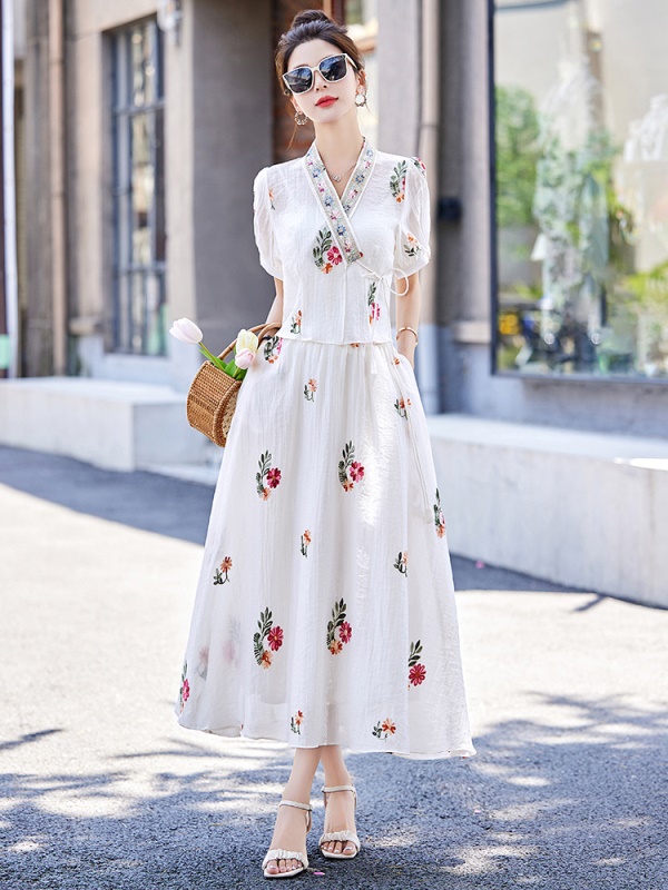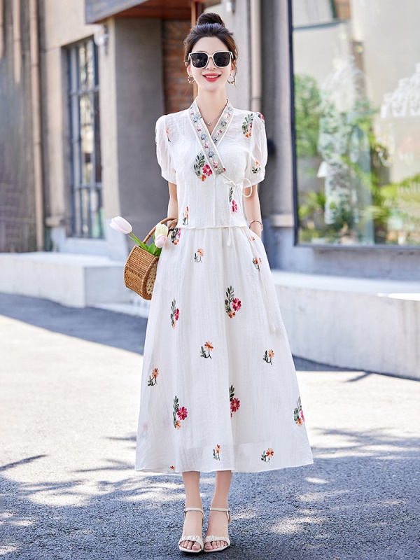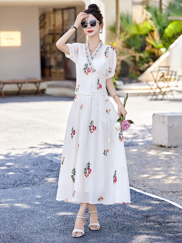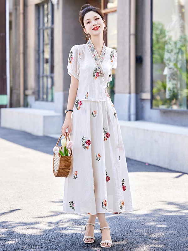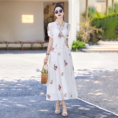 商品名称:新中式民国风套装女2025夏新款时尚名媛高端V领印花半身裙两件套
