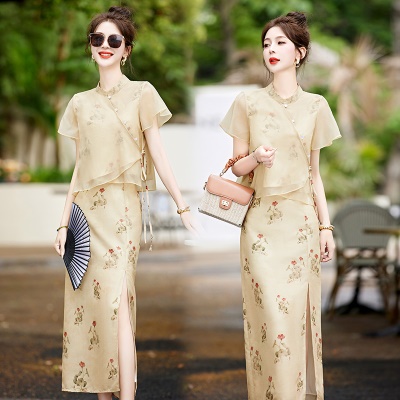 新中式国风收腰显瘦改良旗袍裙2025夏季新款短袖雪纺连衣裙小个子