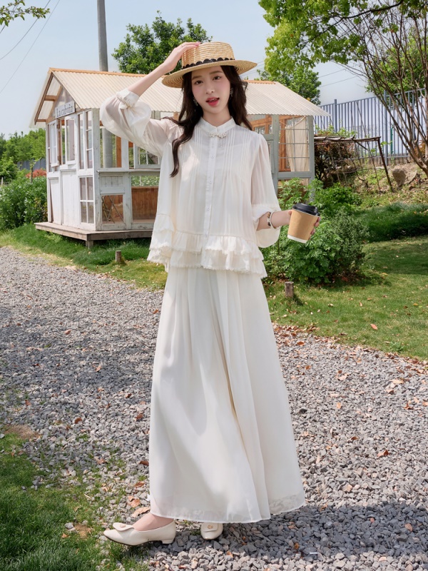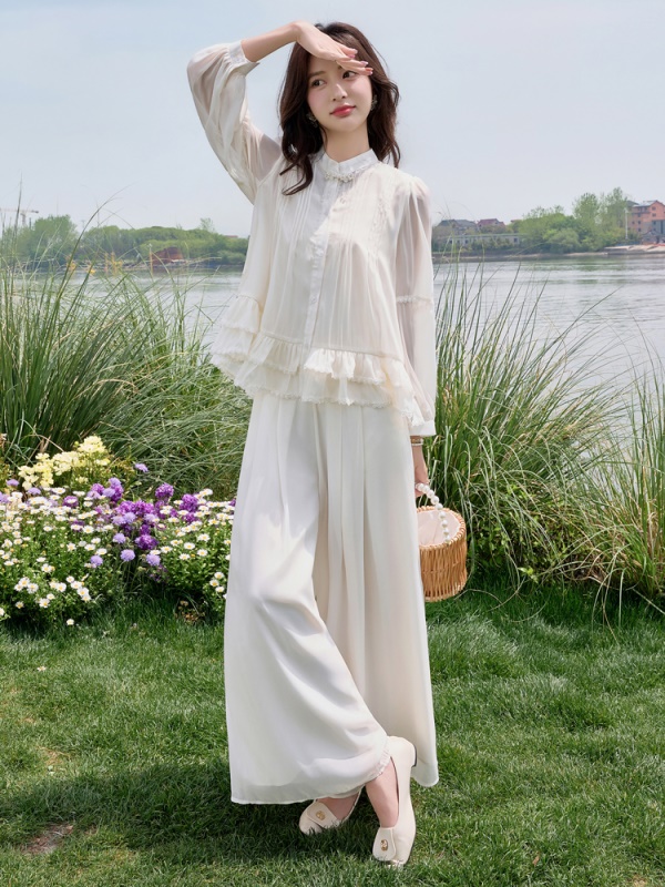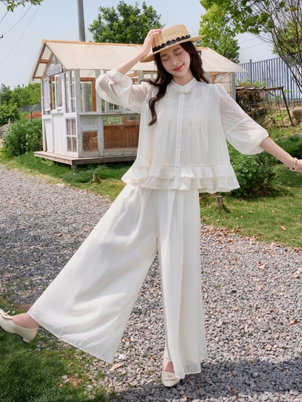 商品名称:小香风荷叶边雪纺套装女2025夏季新款时尚减龄独特阔腿裙裤两件套
