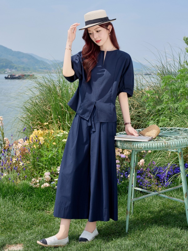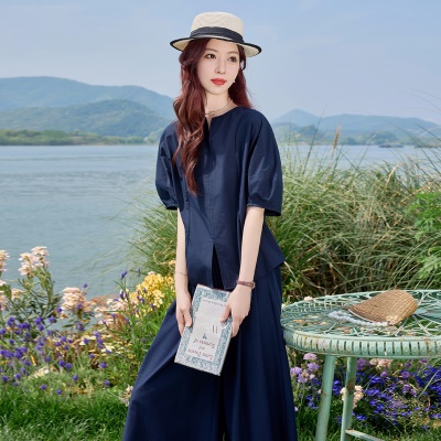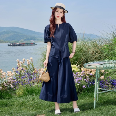 商品名称:大方得体贵气御姐套装女2025夏季新款宽松显瘦妈妈阔腿裙裤两件套