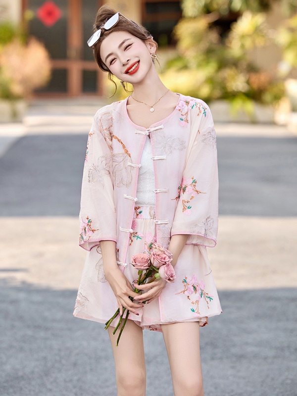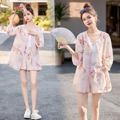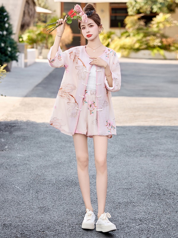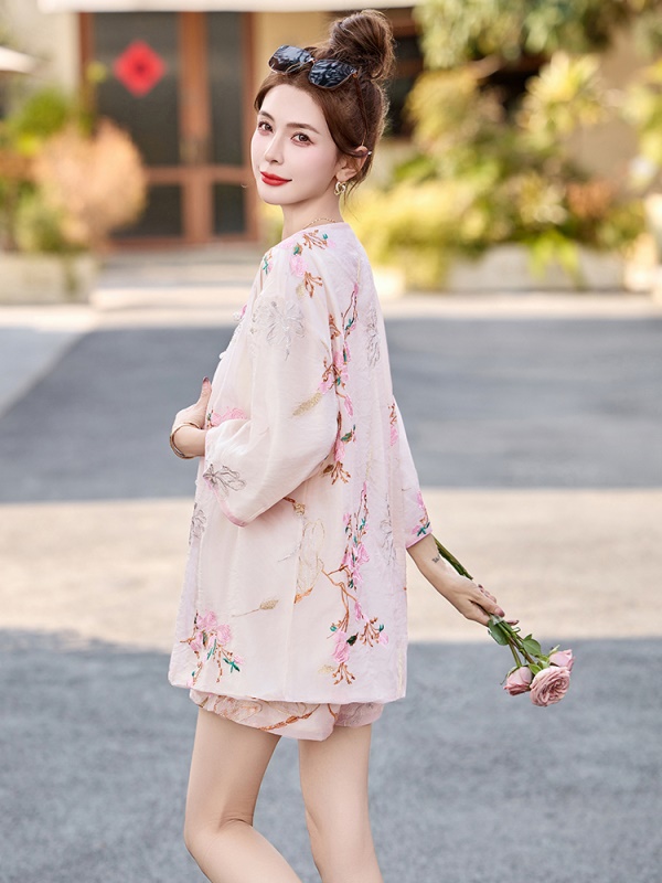 商品名称:新中式国风优雅气质套装女夏2025新款时尚七分袖松弛感短裤两件套