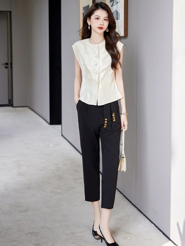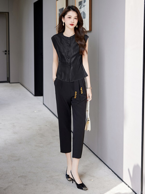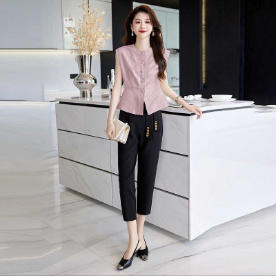 商品名称:西装时尚套装女2025新款夏装正式场合显高小个子欧货九分裤两件套