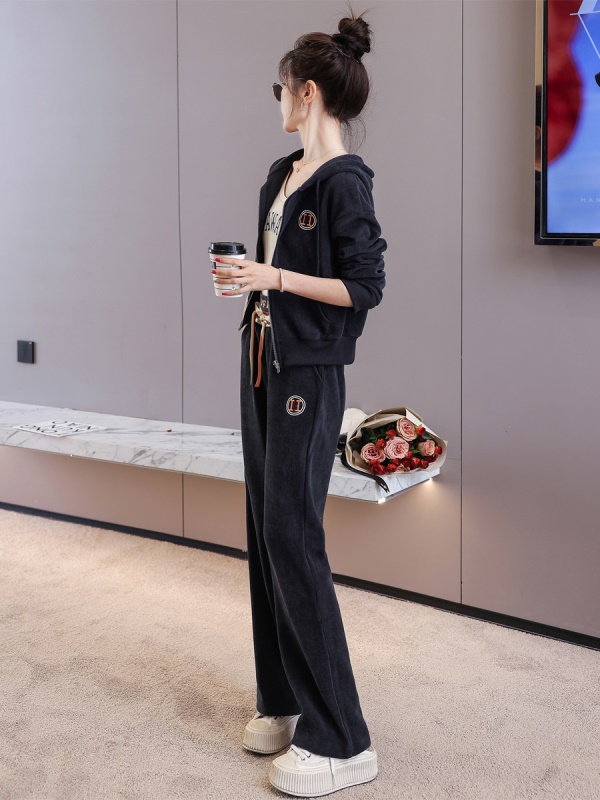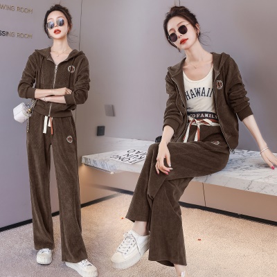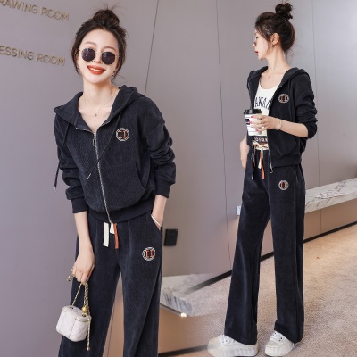 商品名称:欧货休闲时尚套装女新款2025春秋连帽刺绣高端运动服阔腿裤两件套