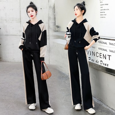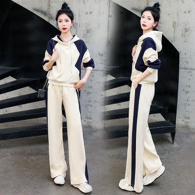 休闲运动套装女早秋冬季2025新款时尚显瘦针织卫衣阔腿裤两件套潮