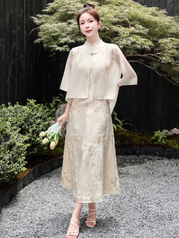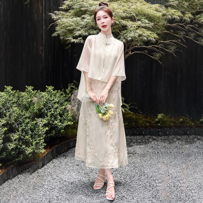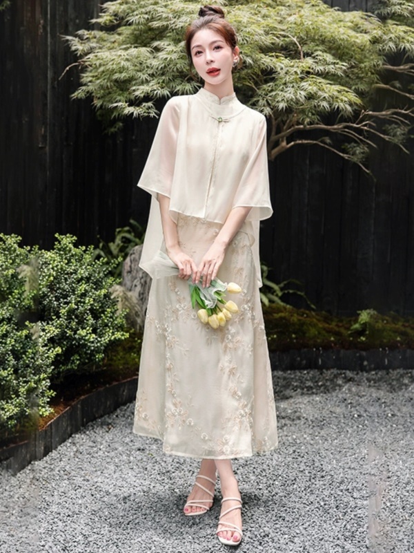 商品名称:新中式减龄刺绣套装裙女2025夏装新款巨显瘦遮肉漂亮中国风两件套