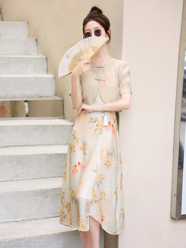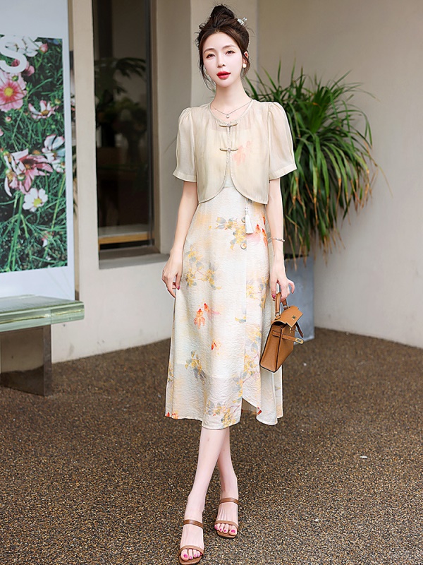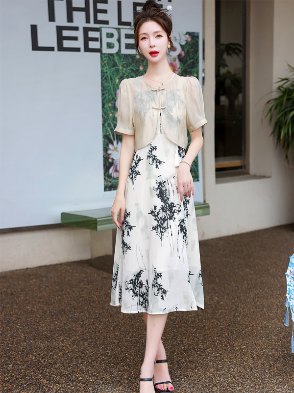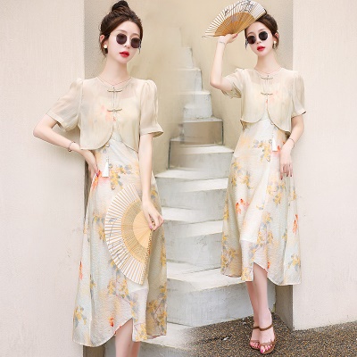商品名称:吊带连衣裙配开衫套装女夏2025新中式国风淑女禅意气质旗袍两件套