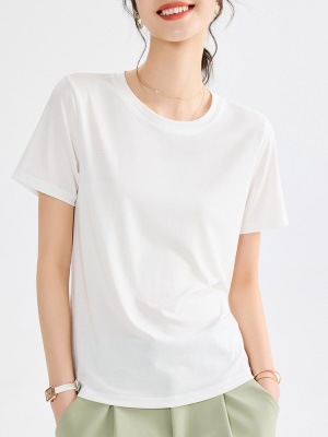 白色短袖T恤女夏季2025新款天丝凉感气质上衣百搭显瘦圆领休闲T潮