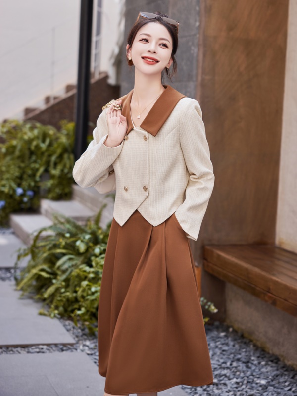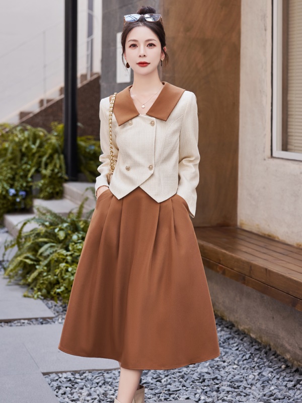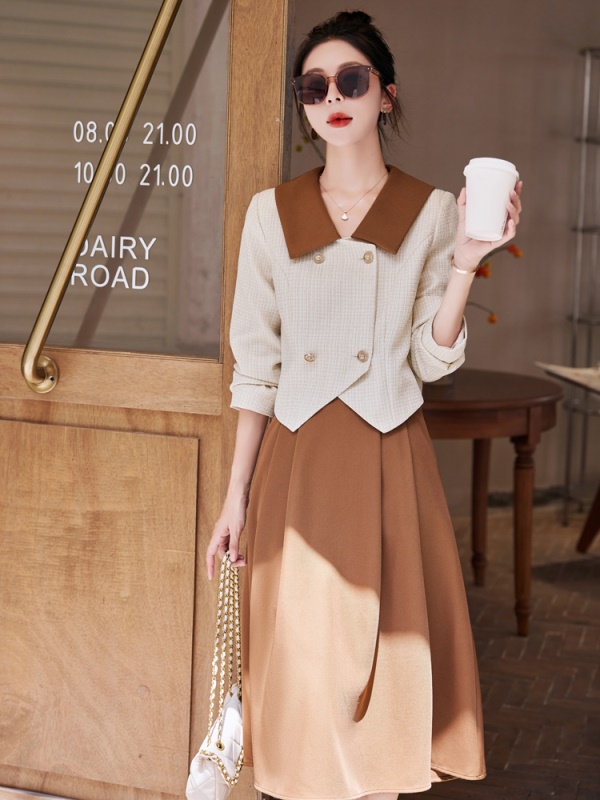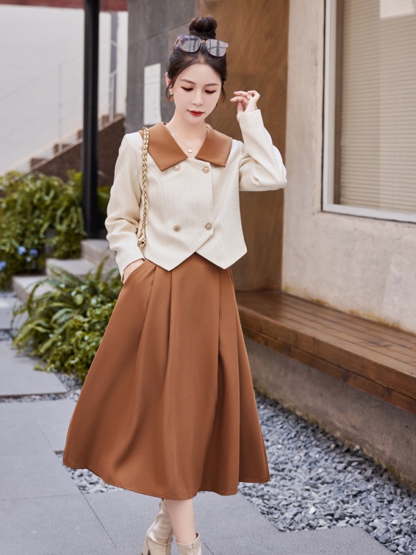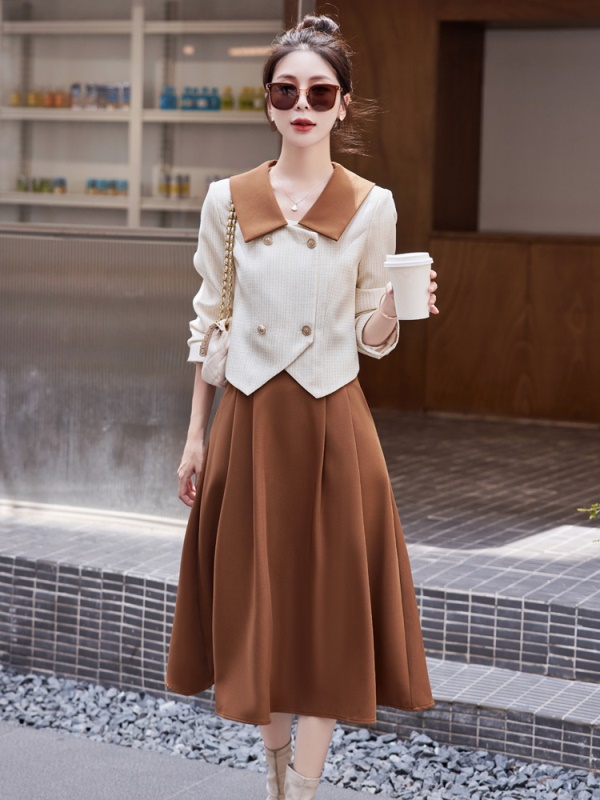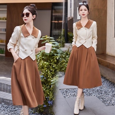 商品名称:撞色翻领小香风套装2025新款爆款秋季民国风高端名媛半身裙两件套