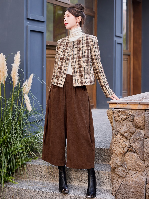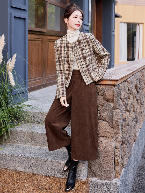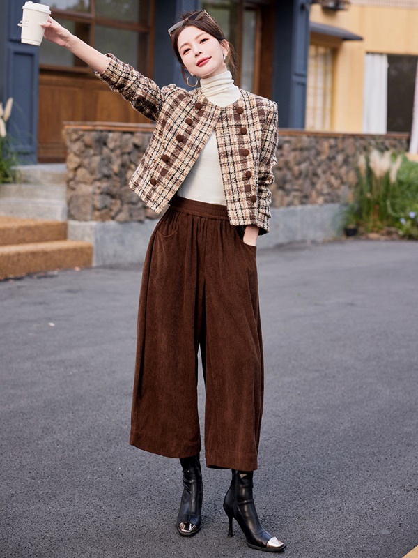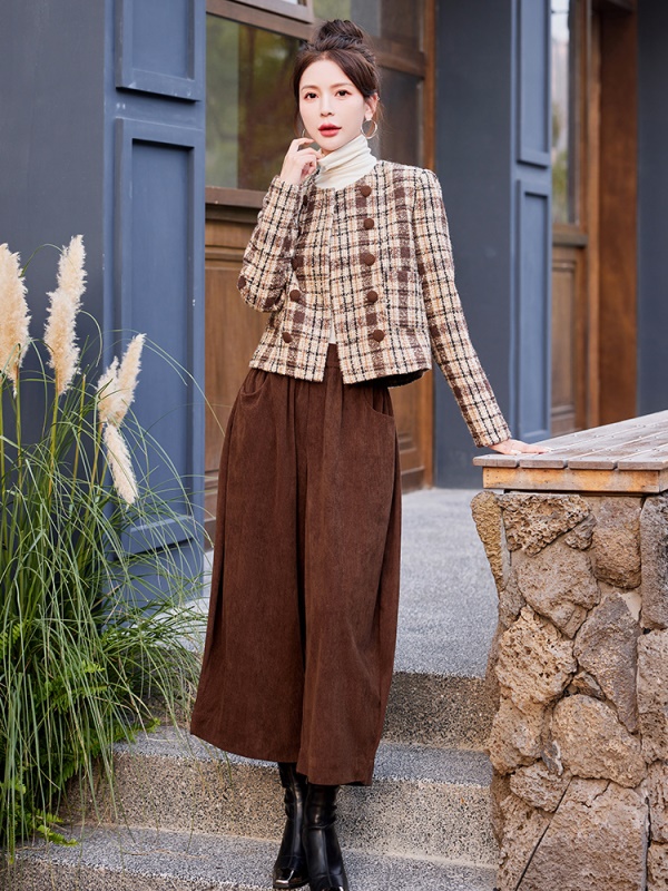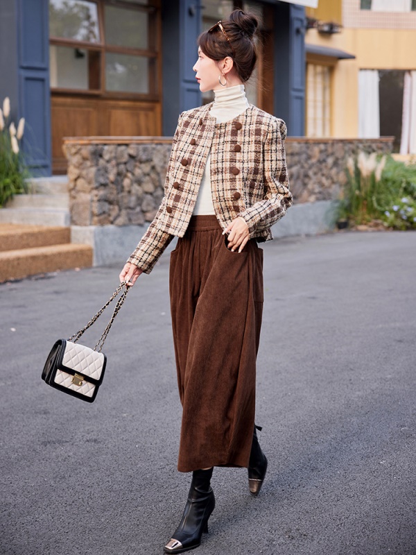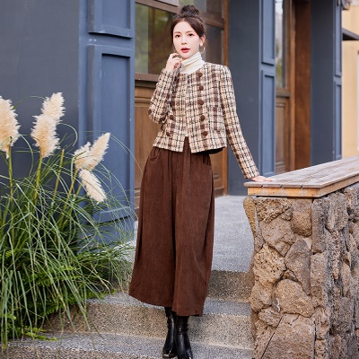 商品名称:小香风羊毛呢套装女2025秋冬新款高档奢华复古灯芯绒时尚两件套裤