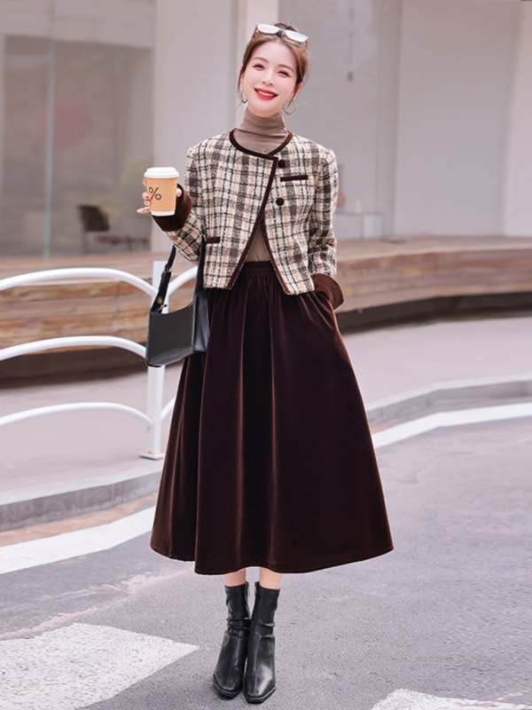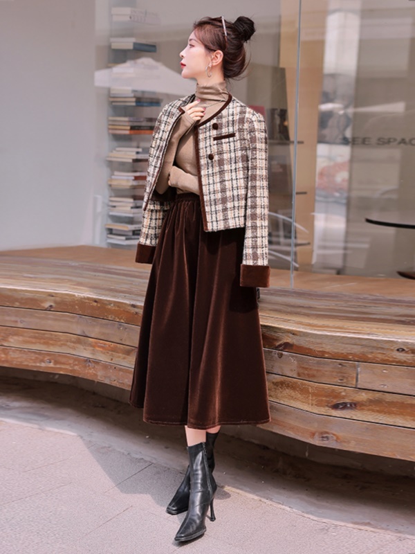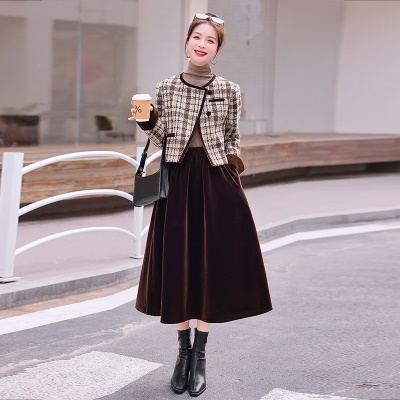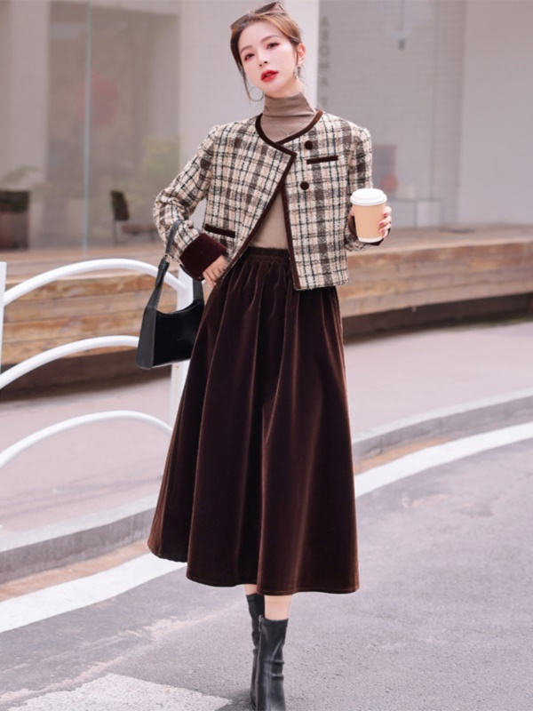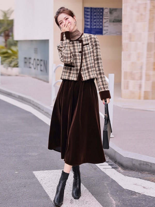 商品名称:欧货格子羊毛呢套装女2025春秋装新款小香风半身裙早秋穿搭两件套
