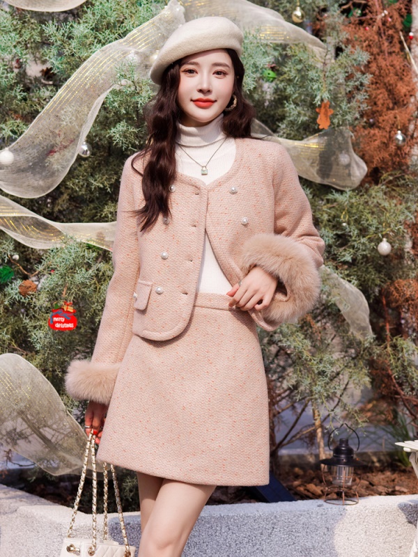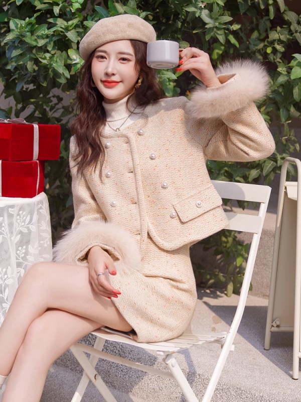 商品名称:小香风时尚羽绒服套装女2023新款爆款欧货流行冬装搭配一整套高端
