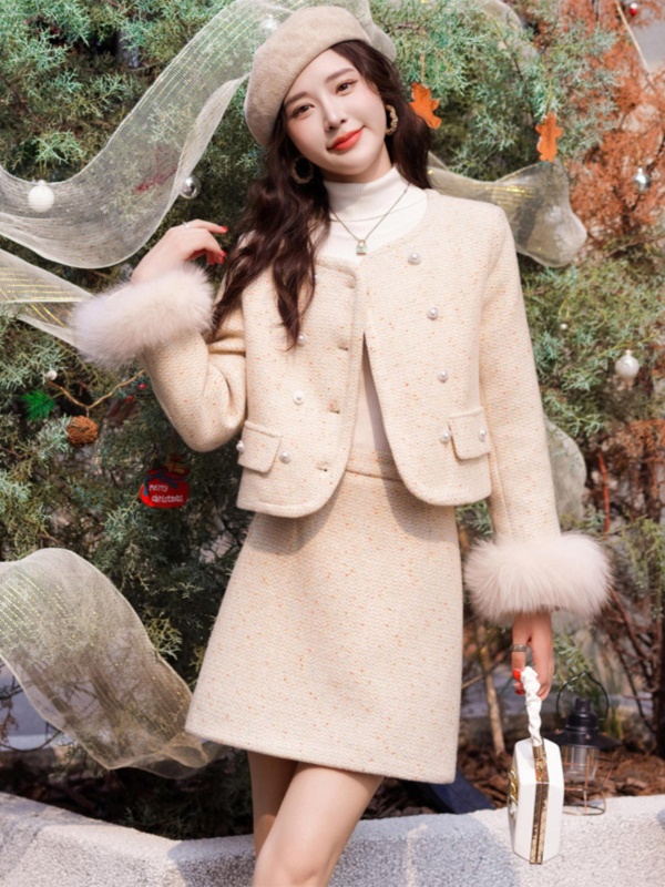 小香风时尚羽绒服套装女2023新款爆款欧货流行冬装搭配一整套高端