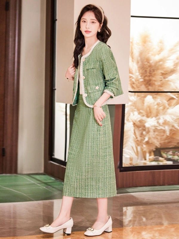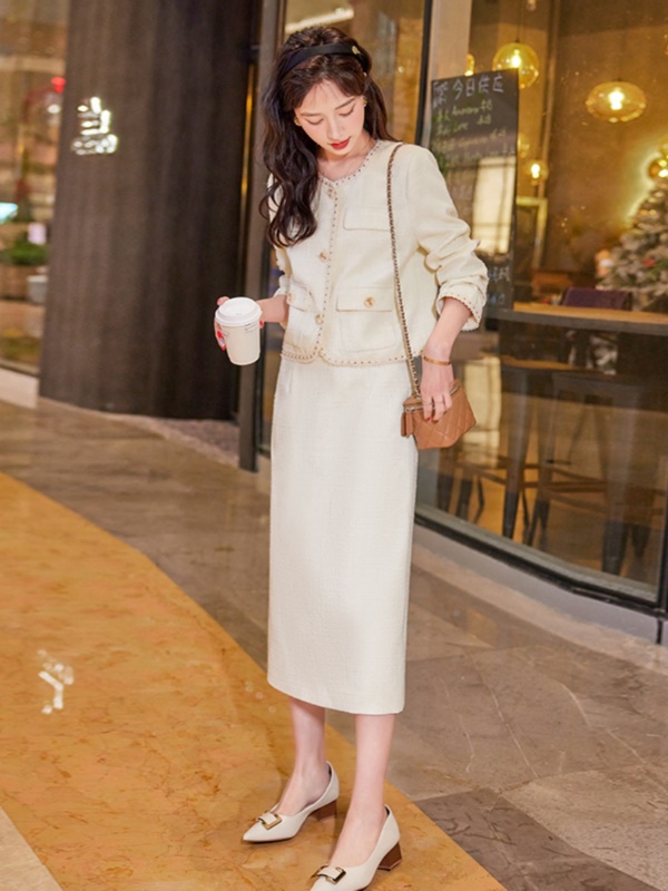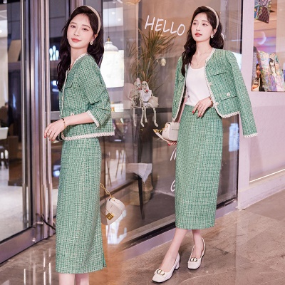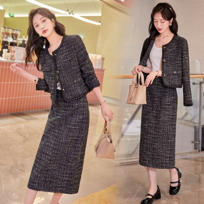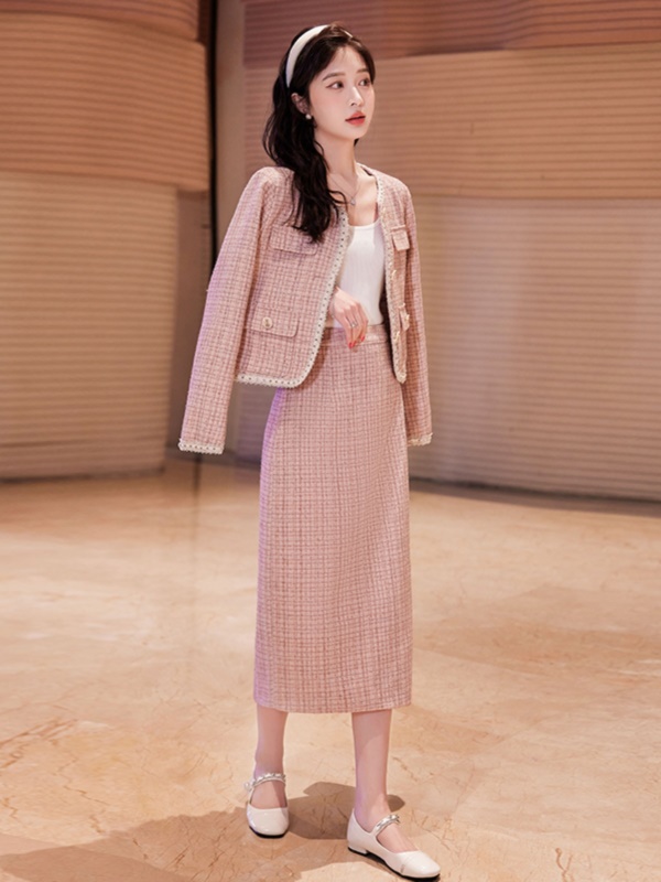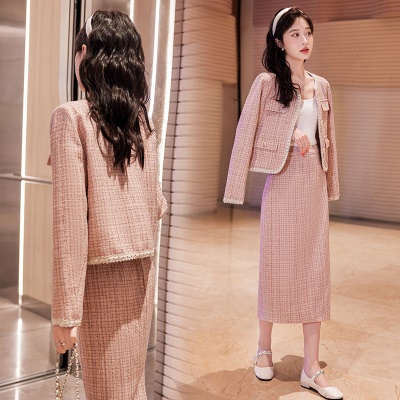 商品名称:粉色名媛小香风套装女2025春秋新款欧货无领今年流行漂亮两件套裙