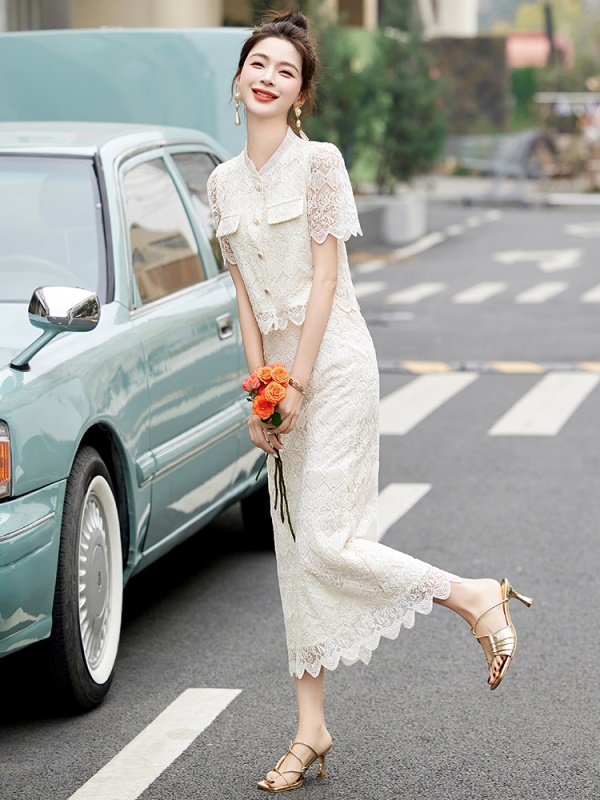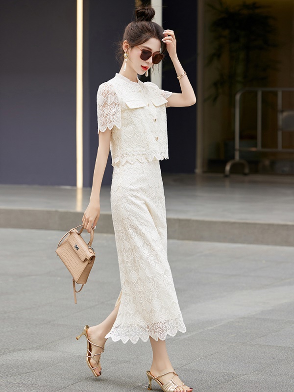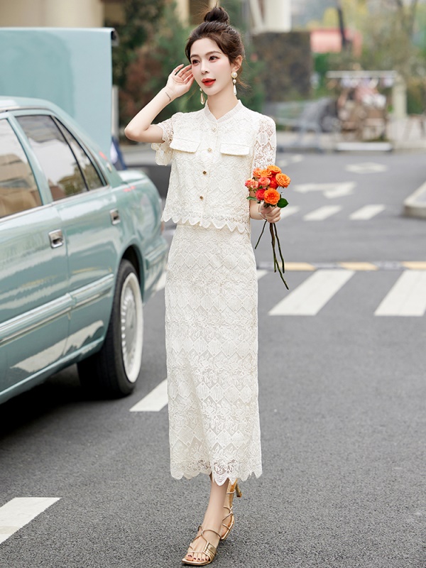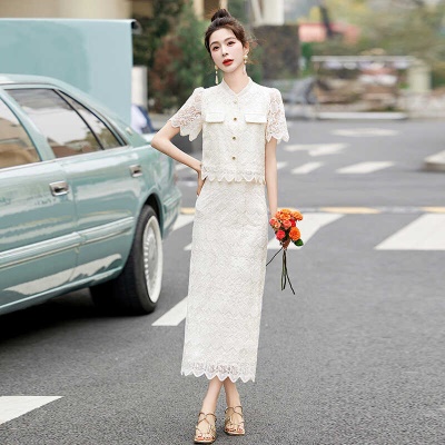 商品名称:今年流行漂亮套装裙女2025夏装新款小香风蕾丝半身长裙欧货两件套