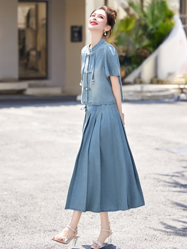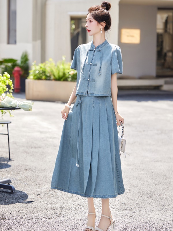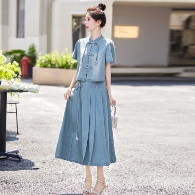 商品名称:薄款冰丝牛仔套装裙女2025夏天新品新中式国风今年流行漂亮两件套