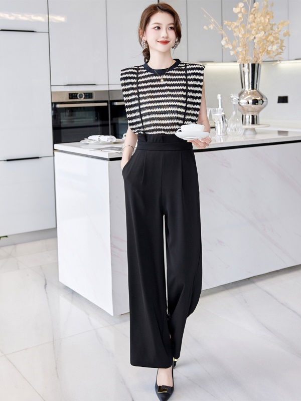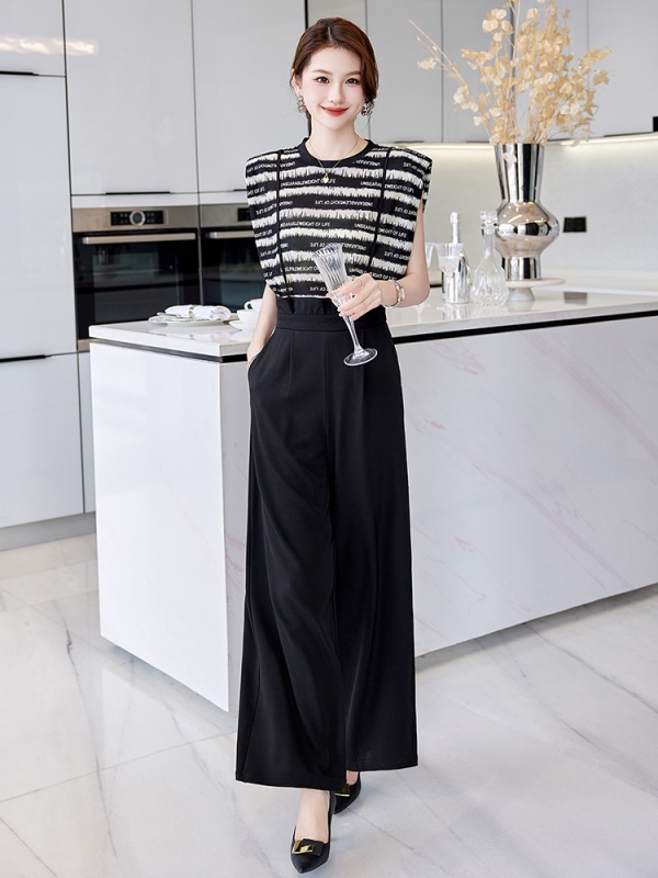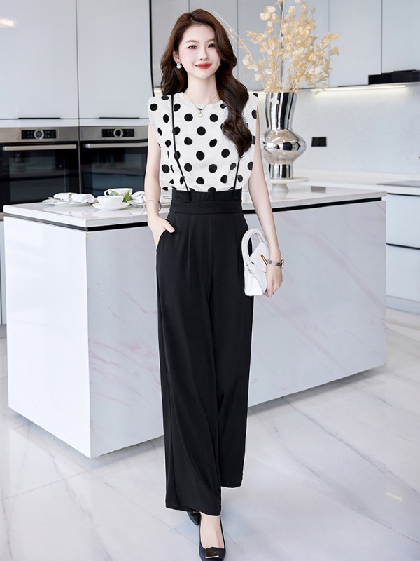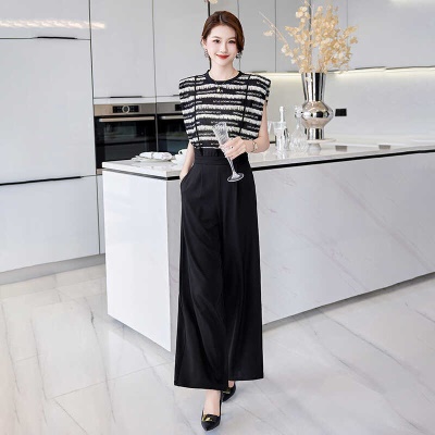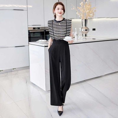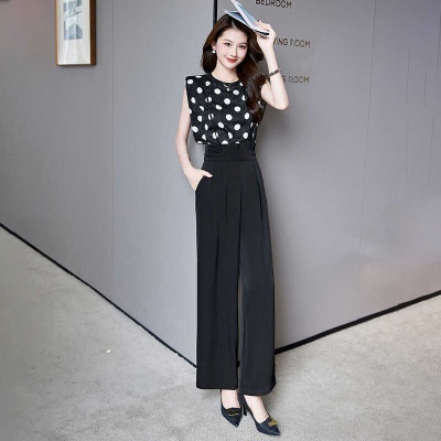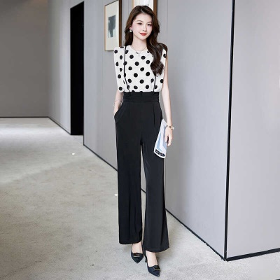 商品名称:欧货印花T恤炸街套装女2025夏新款吊带阔腿背带裤时尚职业两件套