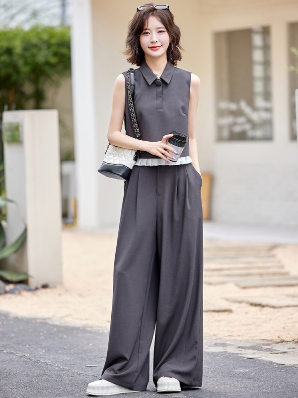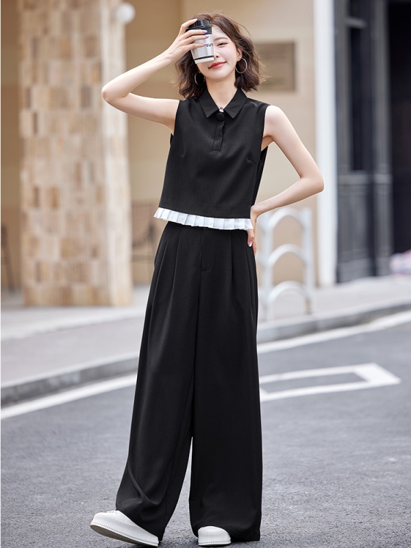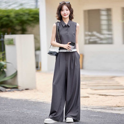 商品名称:欧货炸街干练套装女2025夏装新款时尚穿搭遮肉高腰阔腿裤两件套潮