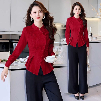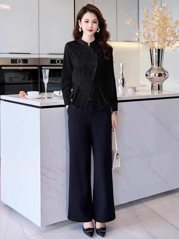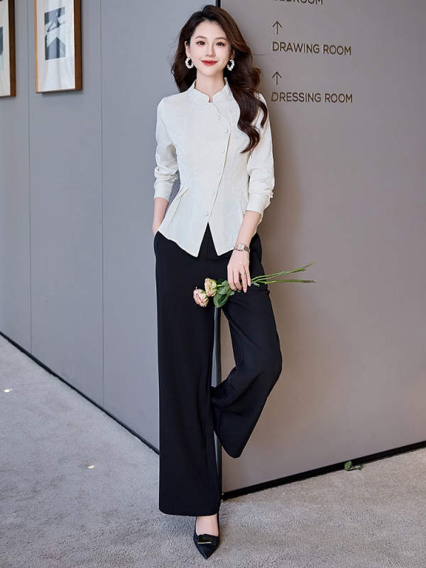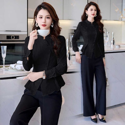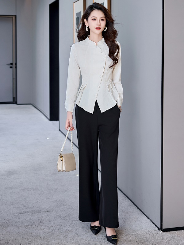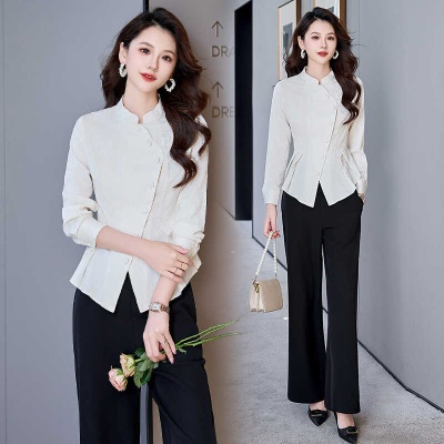 商品名称:欧货时尚职业套装女2025年秋季新款正式场合显瘦衬衣喇叭裤两件套
