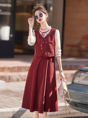 美拉德灯芯绒马甲连衣裙套装女2025年春季新款格子时尚高档两件套