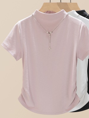 基础短袖内搭T恤女2025新款夏季打底衫半高领减龄洋气短款上衣潮